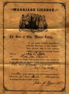 Marriage Certificate of John Copeland Latta and Mary Jane (Morris)