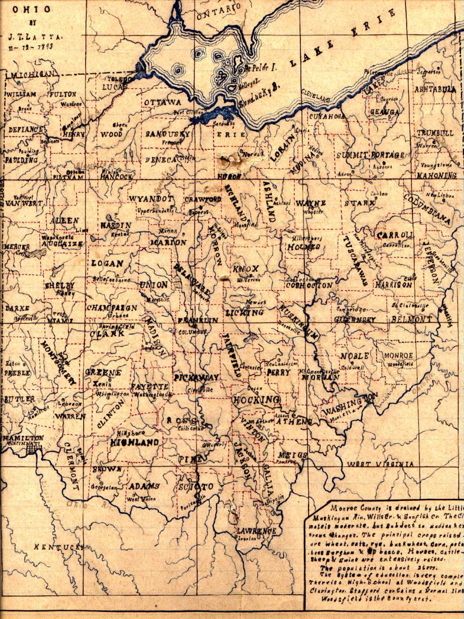 Map of Ohio prepared by John Tilden Latta in November 12, 1893 at the age of 17.